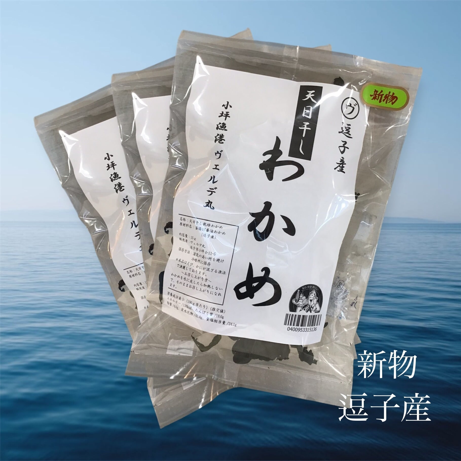 逗子産のわかめを釜揚げし、天日干しで、仕上げました。水で戻し、加熱しないでそのまま召し上がれます。