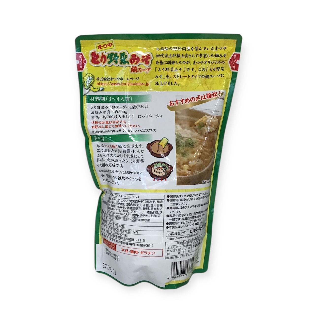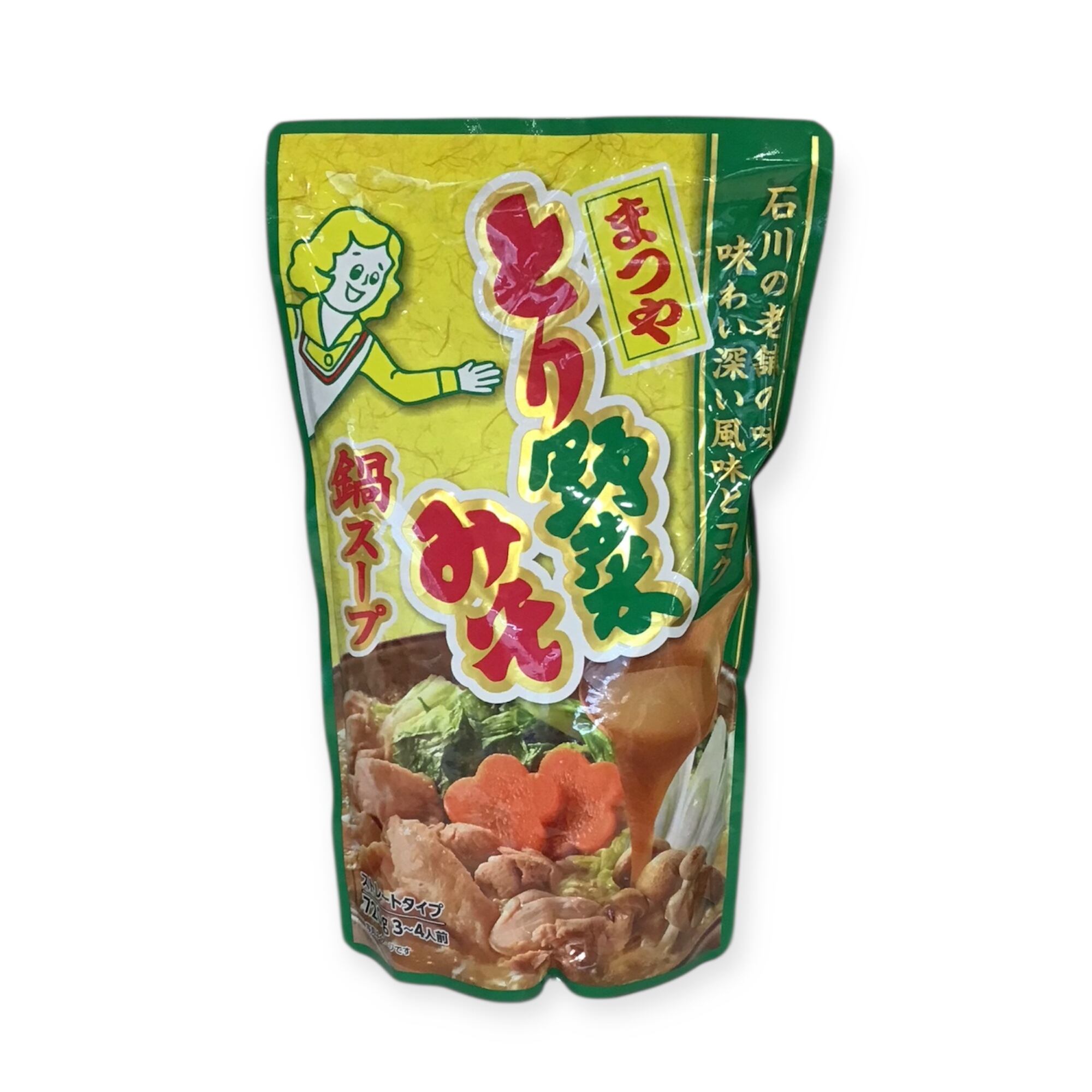 初代当主が船上食として考案した鍋みそを基に開発したのが、まつやオリジナルの「とり野菜みそ」です。この「とり野菜みそ」をストレートタイプの鍋スープに仕上げました。