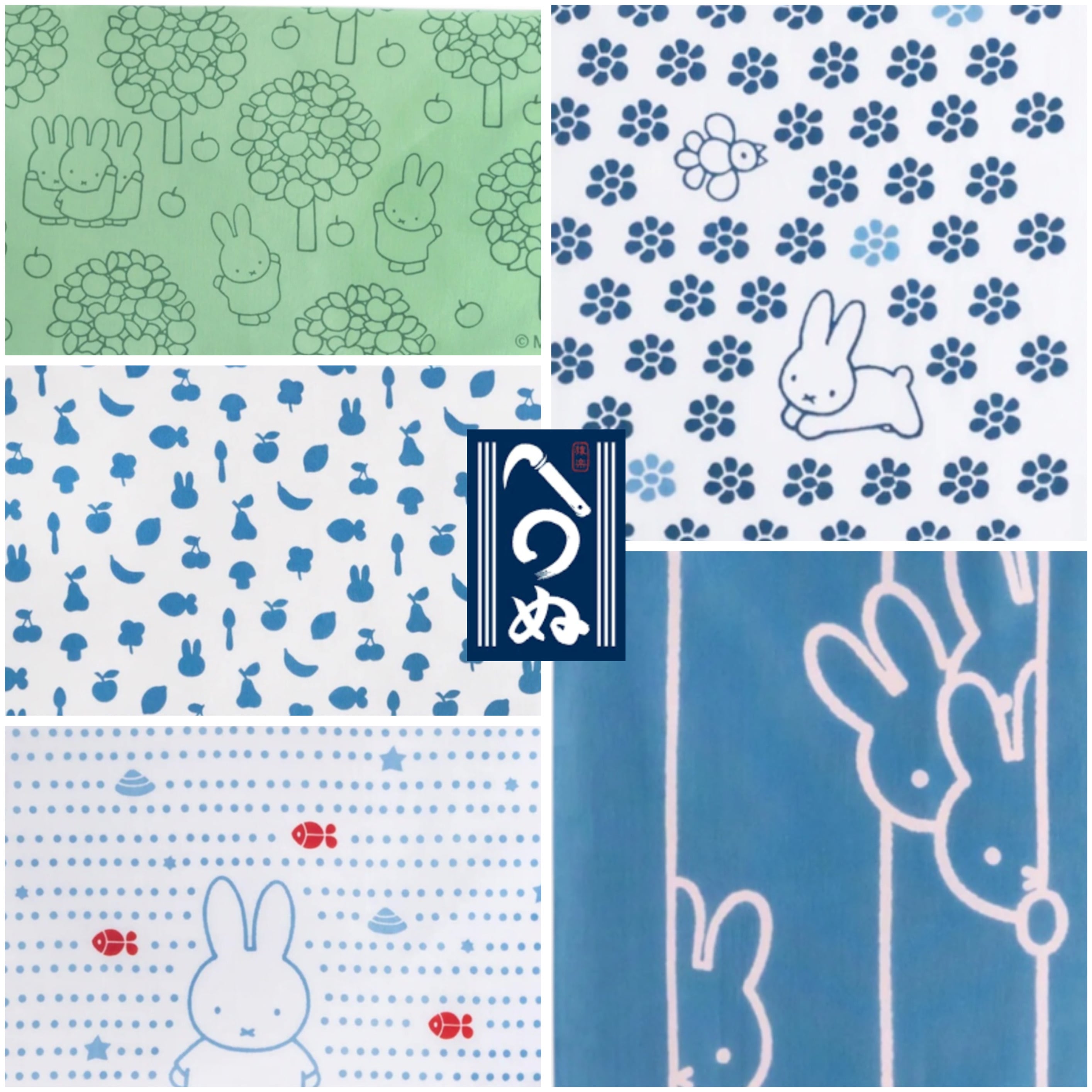 ミッフィーのお顔やくだもの、スプーンなど小さなアイコンが並んだ小紋柄のシンプルなデザインです。てぬぐいとしてはもちろん、ハンドメイドの材料としても◎。自分だけのオリジナルなミッフィーの世界をお楽しみいただけます。