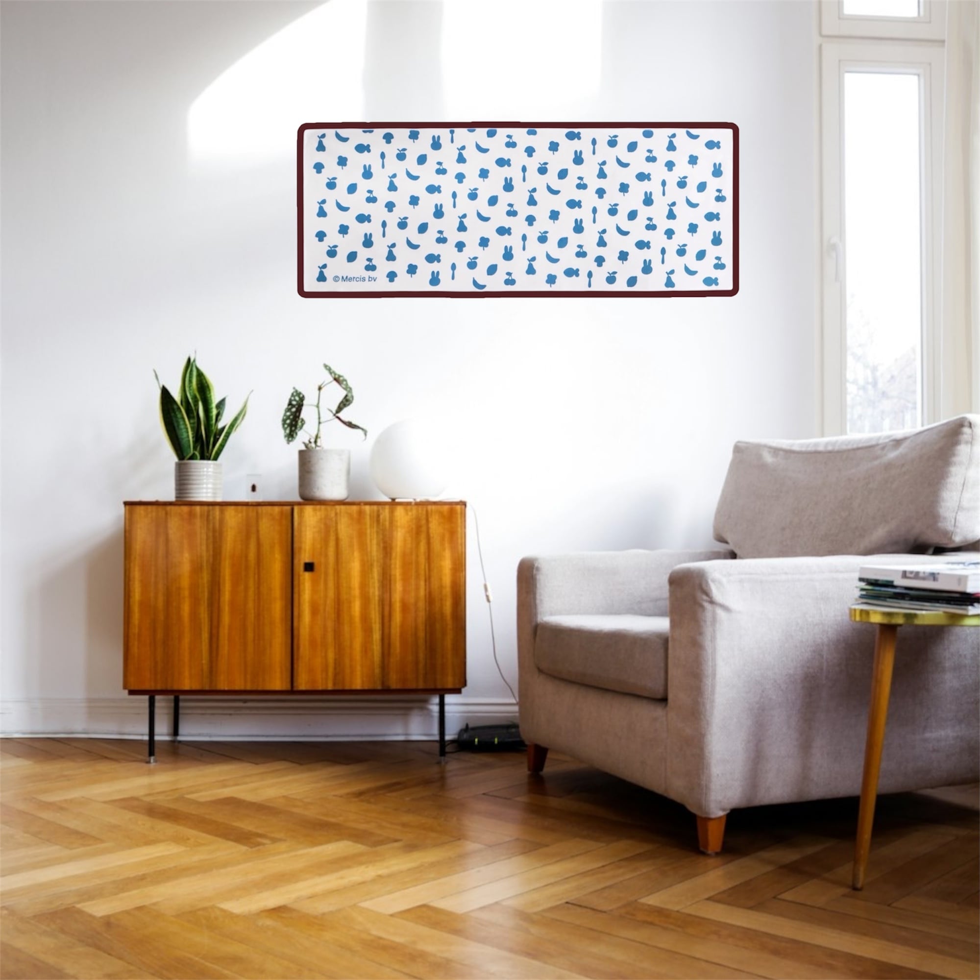 別売の額やタペストリーにセットしてお部屋のインテリアとしてもお楽しみいただけますが、掛ける・敷くなど、アイデア次第で日々の暮らしの様々なシーンでもご利用いただけます。