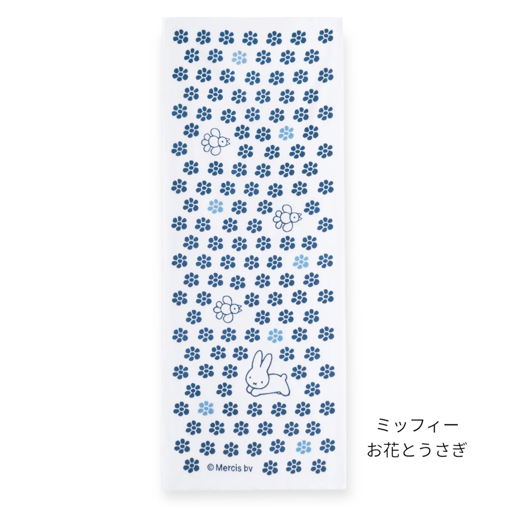 お花畑を自由に跳びまわる楽しげなうさぎと鳥たちのデザインです。さっぱりと清潔感のあるカラーは、ハンカチ代わりのお手拭きや汗取りに。お家ではランドリースペースのハンドタオル代わりや洗濯物の目隠しとしてもおすすめです。