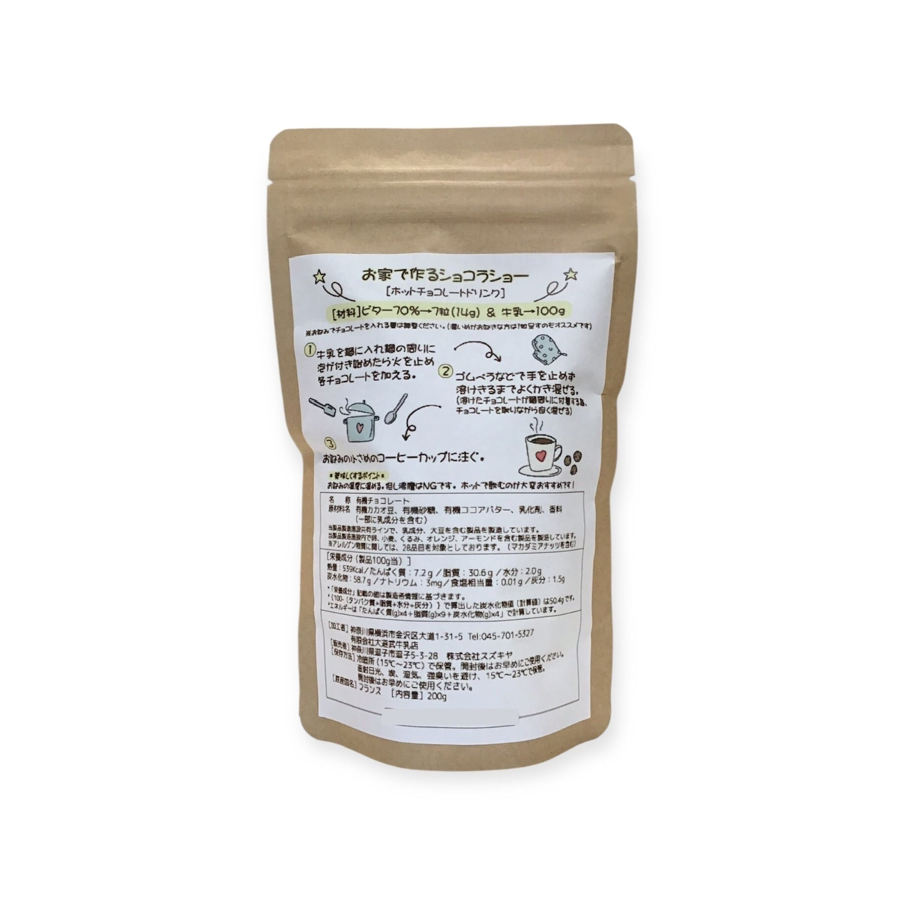 suzukiya original フランス産チョコレート カカオ70 袋200g