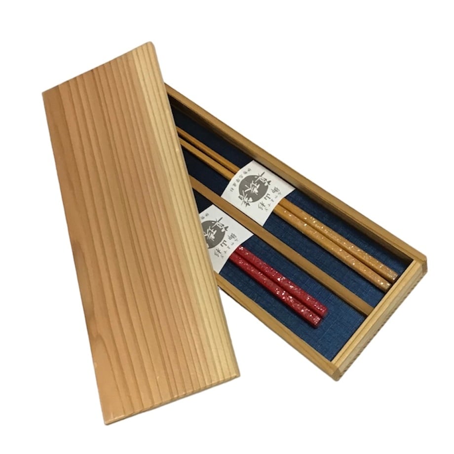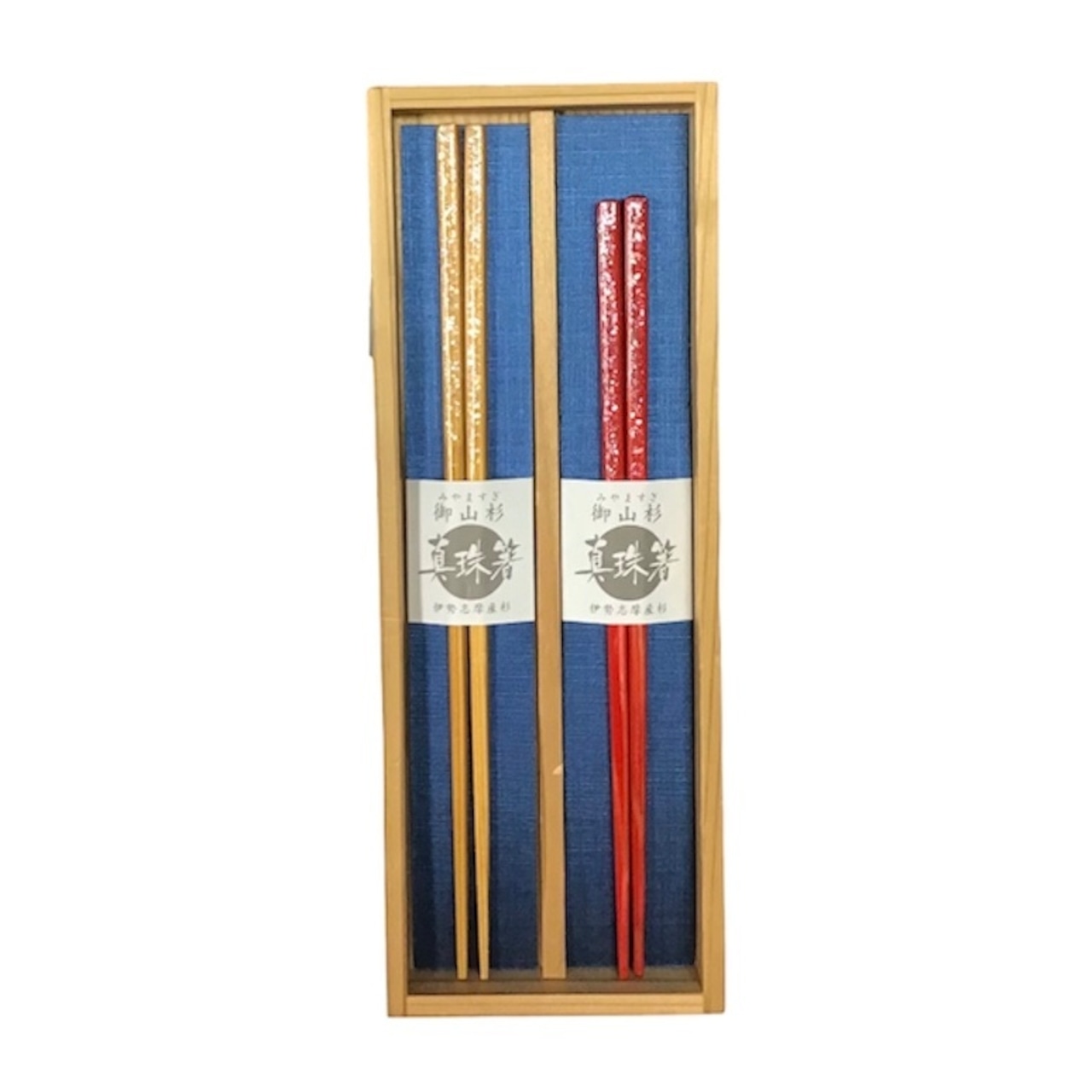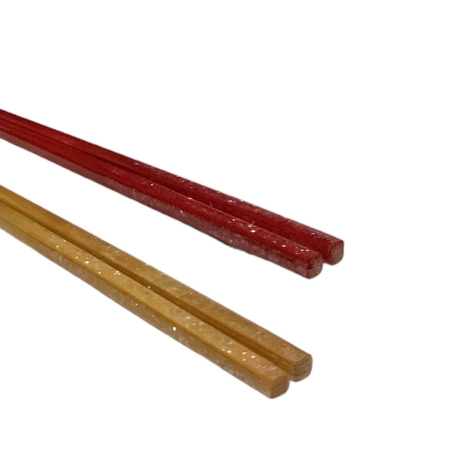 御山杉「真珠箸」は、真珠貝の真珠層をちりばめた塗り箸です。