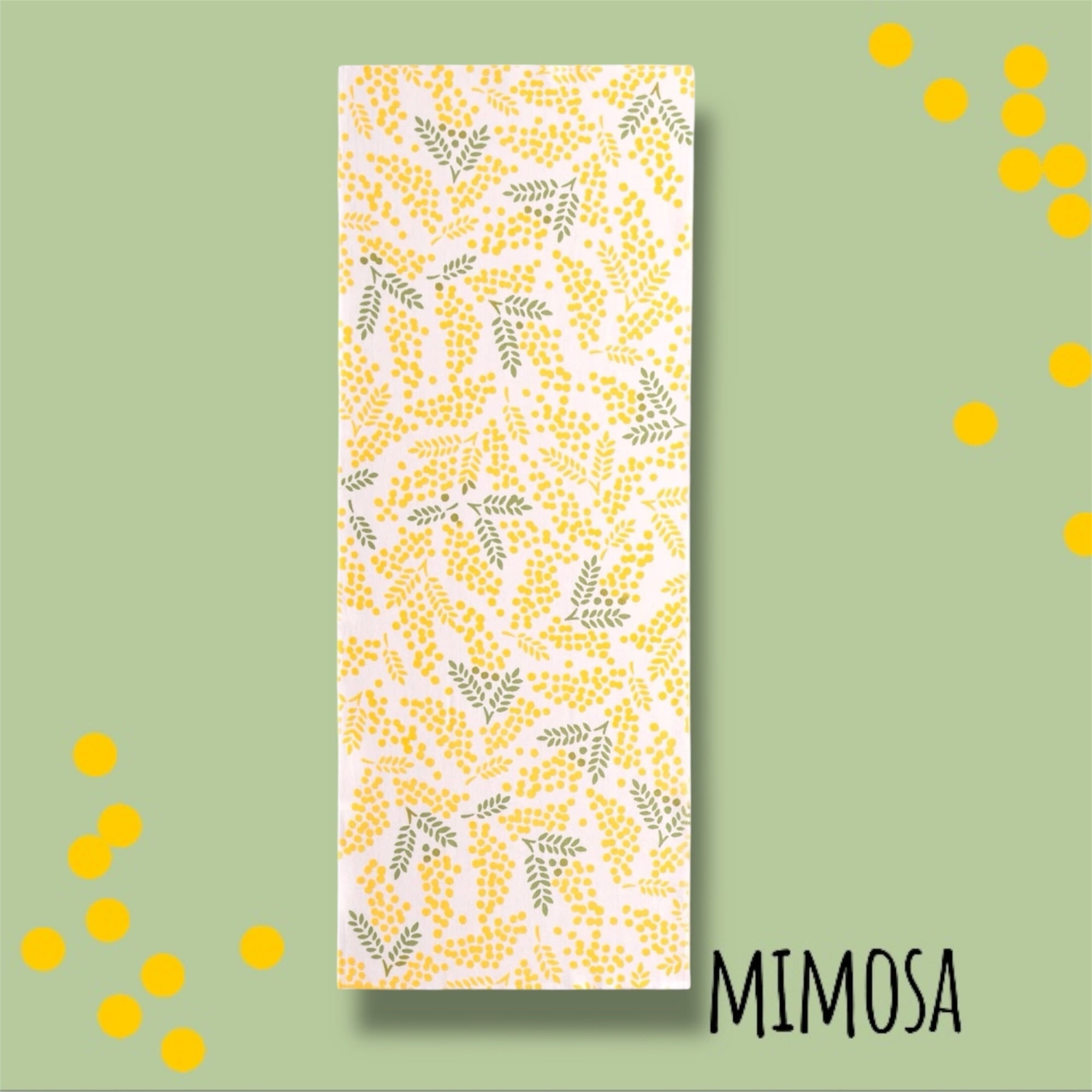 春らしい爽やかなミモザの柄は、さまざまなシーンで活躍します。