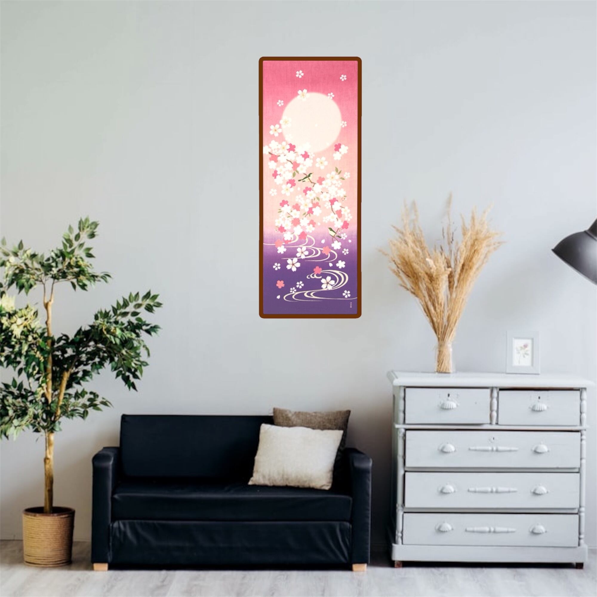 一幅の絵としてお飾りいただける「絵てぬぐい」は、てぬぐいとしてはもちろん、季節感あふれるインテリアとしても好評です。